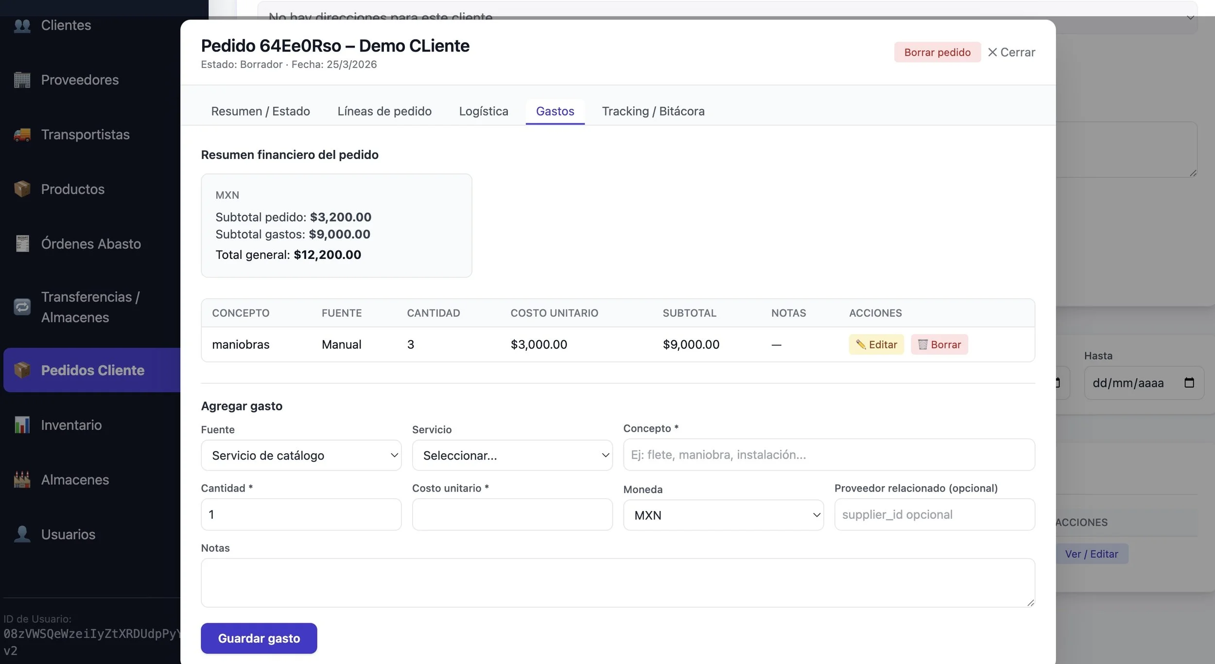 Crea, edita y da seguimiento a pedidos con estados, clientes y detalles completos.